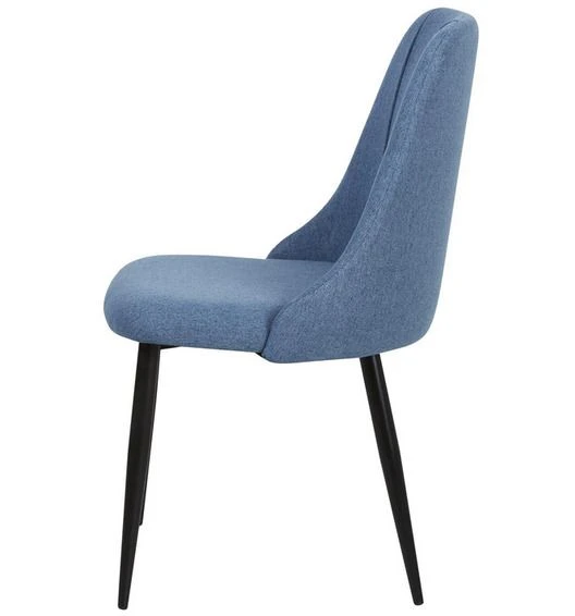 La chaise Ayane est conçue avec une assise en tissu bleu agréablement rembourré sur des pieds solides en métal noir pour vous assurer un confort optimal.