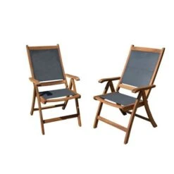 Lot De 4 Chaises De Jardin En Bois D’acacia FSC Et Assise Textilene – 50 X 57 X 90 Cm – Gris